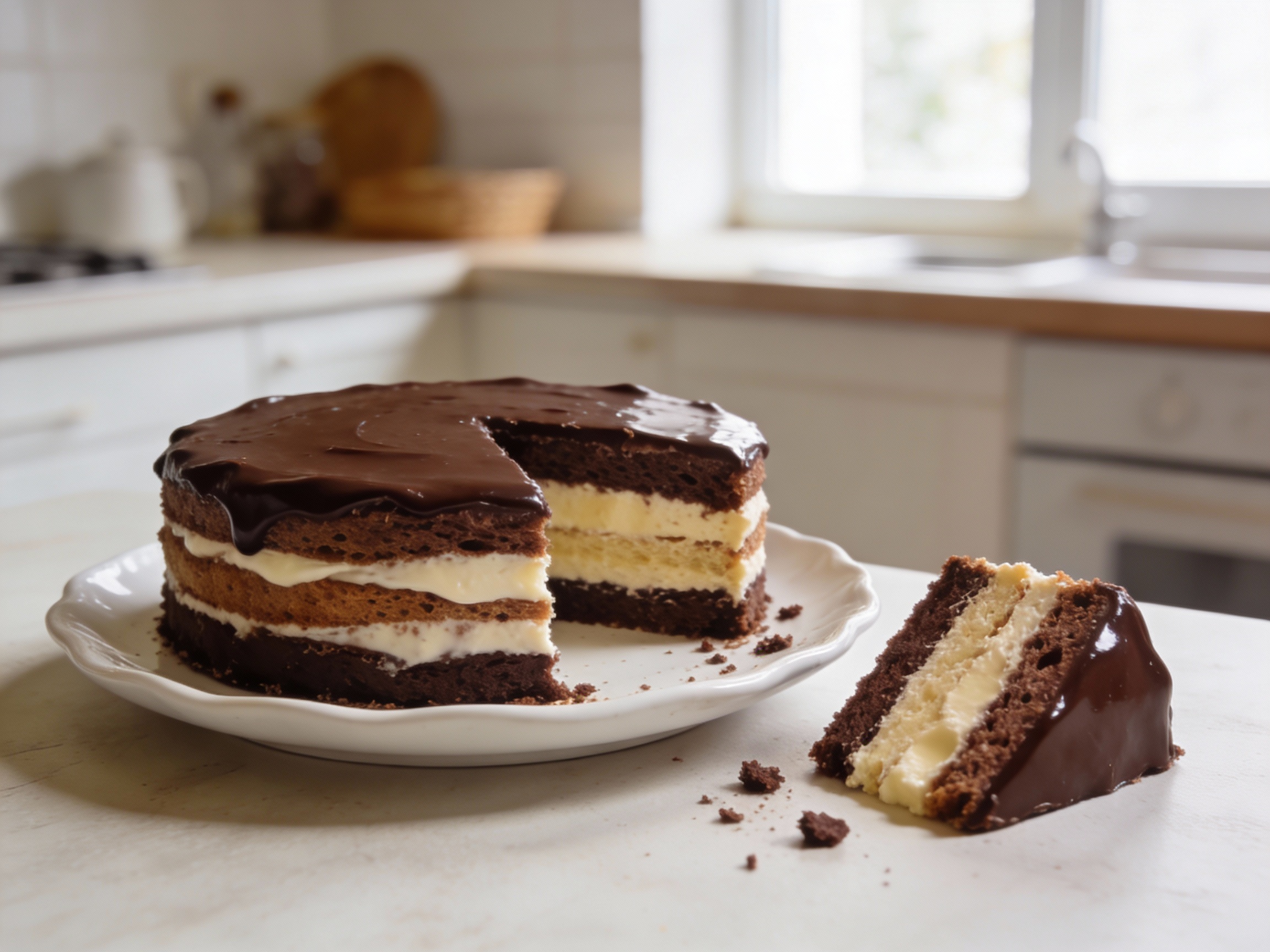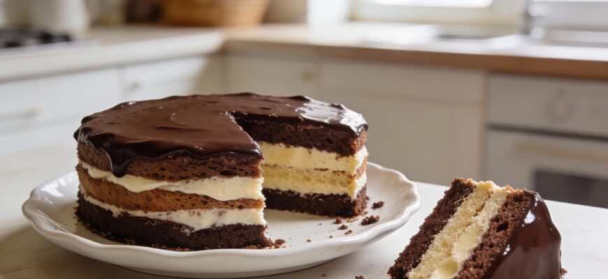 Торт «Чародейка» — это легендарный десерт советского времени, который состоит из нежного бисквита, воздушного заварного крема и блестящей шоколадной глазури. Этот рецепт готовится быстро (примерно за 1,5 часа с учётом охлаждения), из доступных продуктов, и всегда получается вкусным.